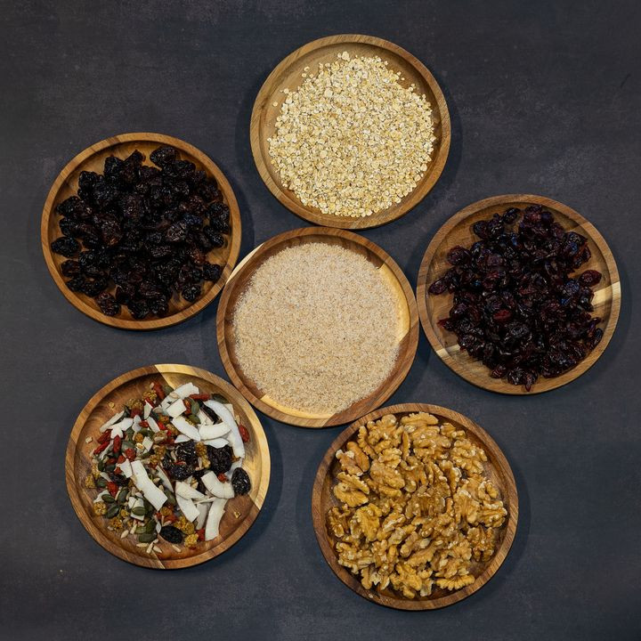 Onze speciaal samengestelde ontbijtmix is een perfecte combinatie van granen, zaden en gedroogde vruchten. Deze mix biedt een uitgebalanceerde start van de dag, vol vezels, vitaminen en mineralen.