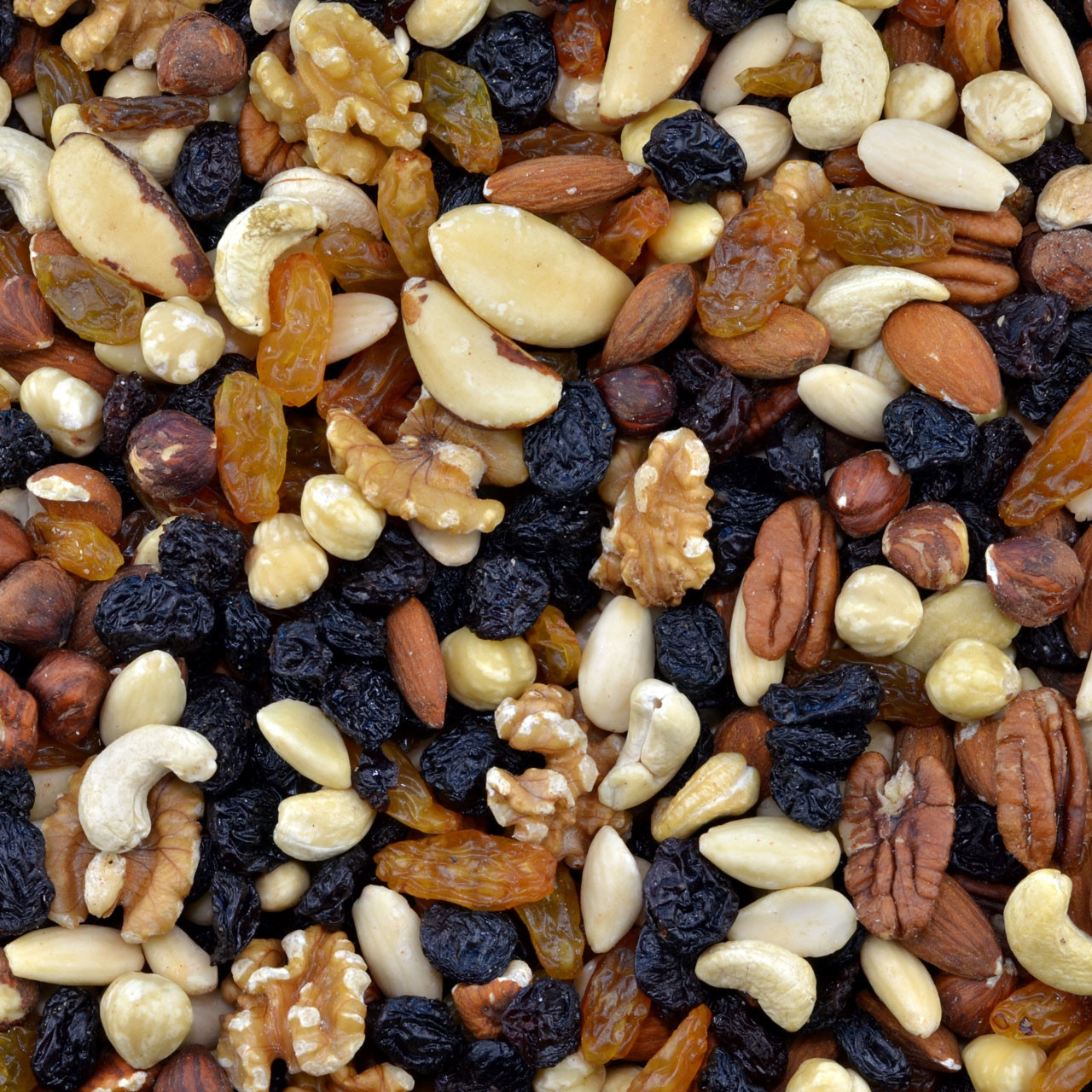 | Ingrediënten | rozijnen, amandelen, hazelnoten, walnoten, paranoten, pecannoten, zonnebloem olie, conserveermiddel (e220) (sulfiet) |