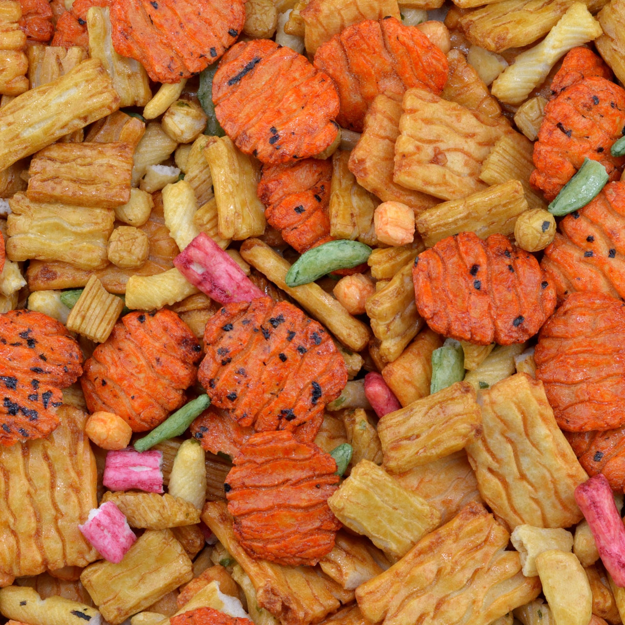 | Ingrediënten | rijstmeel, tarwebloem, suiker, maïsmeel, sesamzaad, aardappelzetmeel, sojasaus, tarwe, dextrine, maiszetmeelsiroop, zeewier, opwekmiddel (e500), kleurstoffen ( e150a), gemodificeerd tapioca-zetmeel, zout, kleuren (e160c), ui, voedingszuur (e330), peper, knoflook |